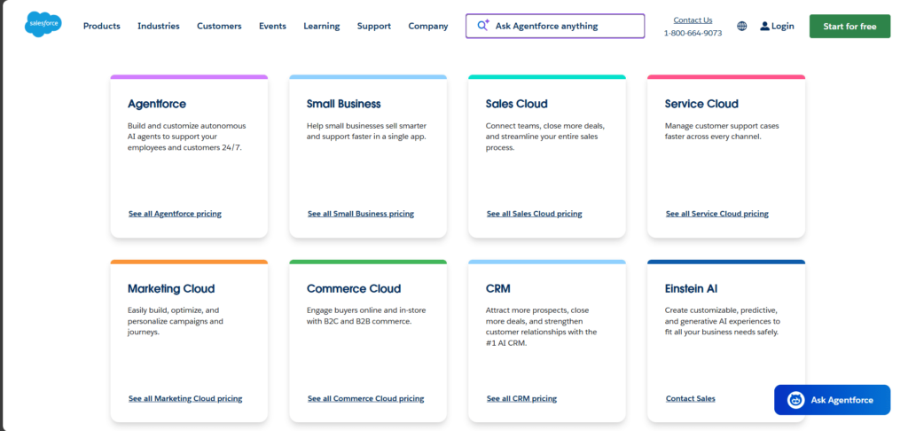 Salesforce does not offer a free plan, but it delivers enterprise-level customization and scalability. Pricing is based largely on user seats and feature bundles, which means costs increase as your sales or support team grows.